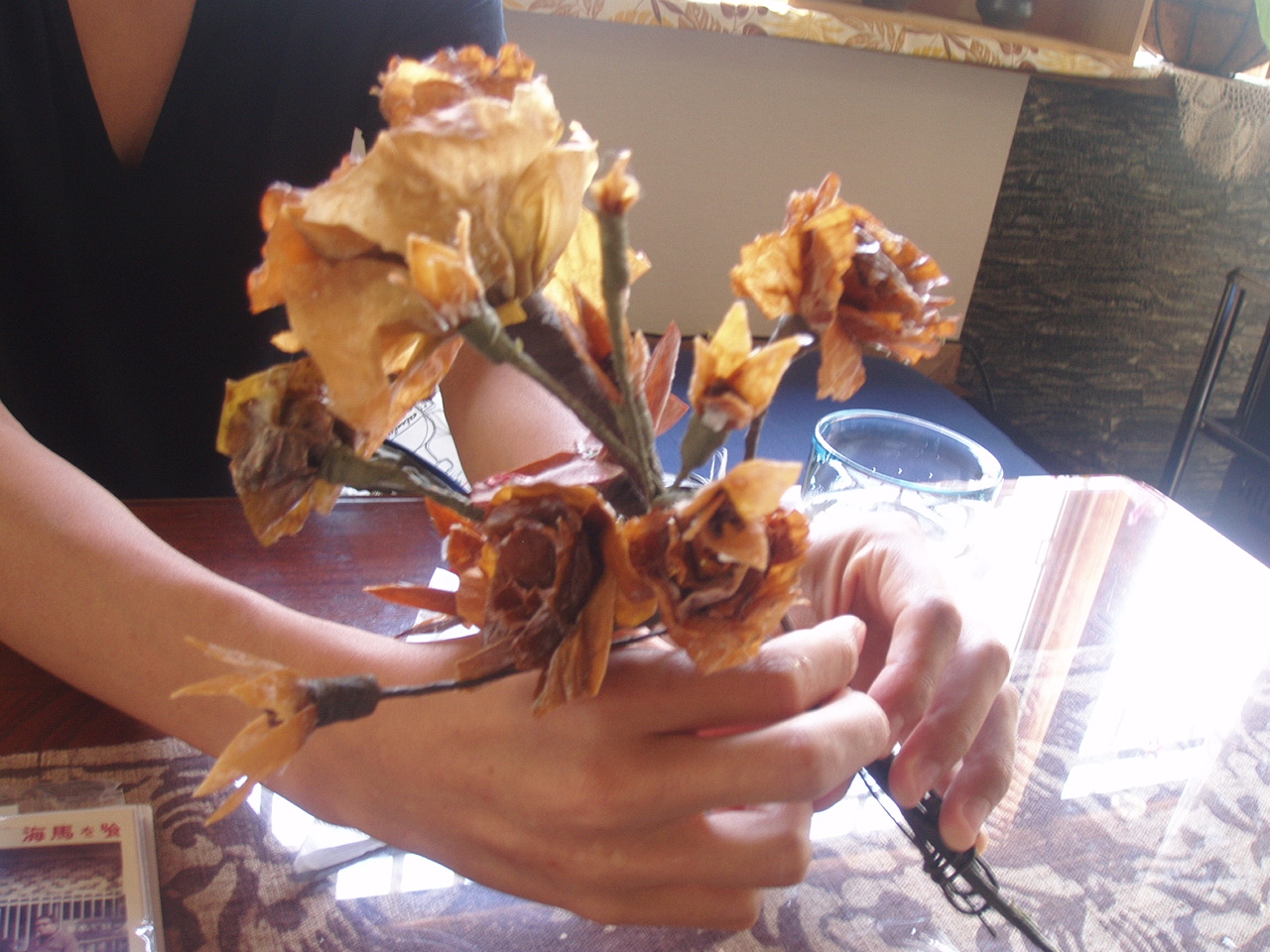 羅臼で立ち寄った喫茶店で、オーナーに見せてもらった昆布細工の花束。