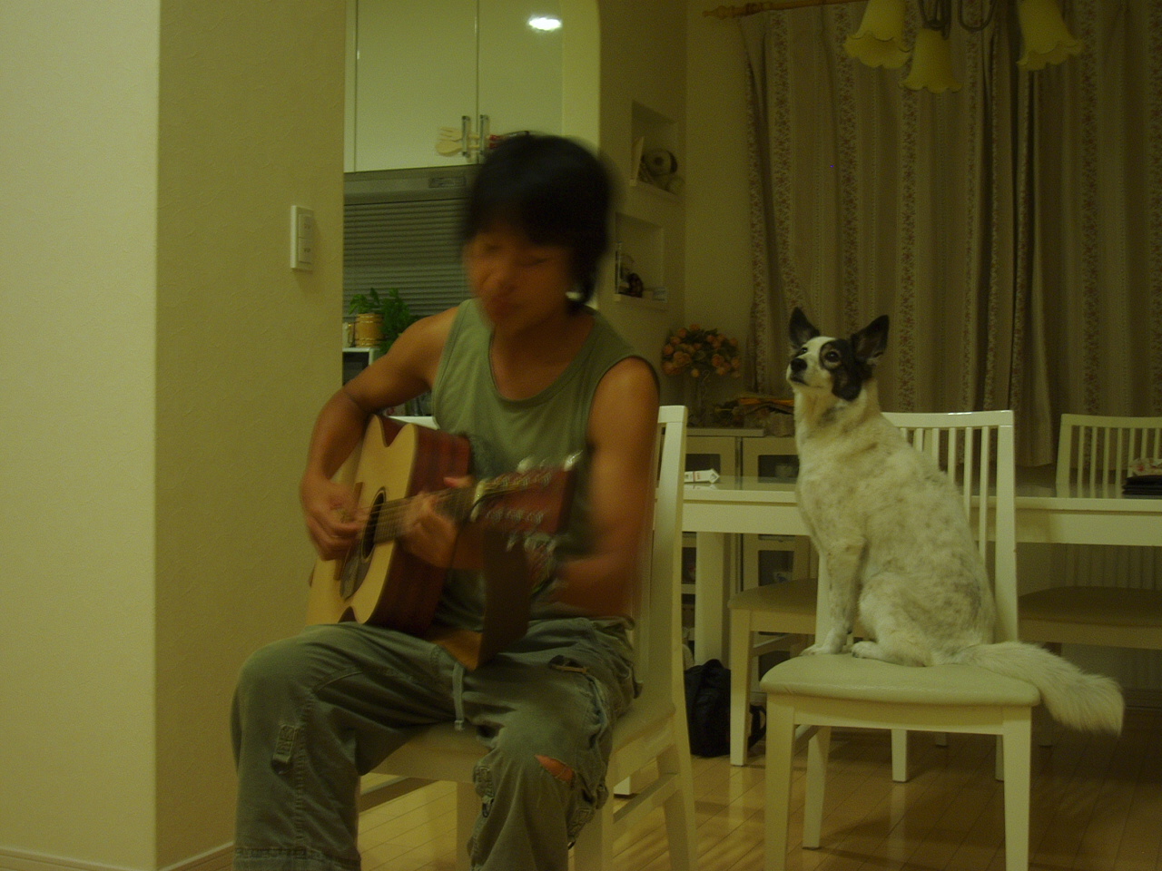 ハイジが特等席で聴いているのです。かわいいけど噛みつくぜ!