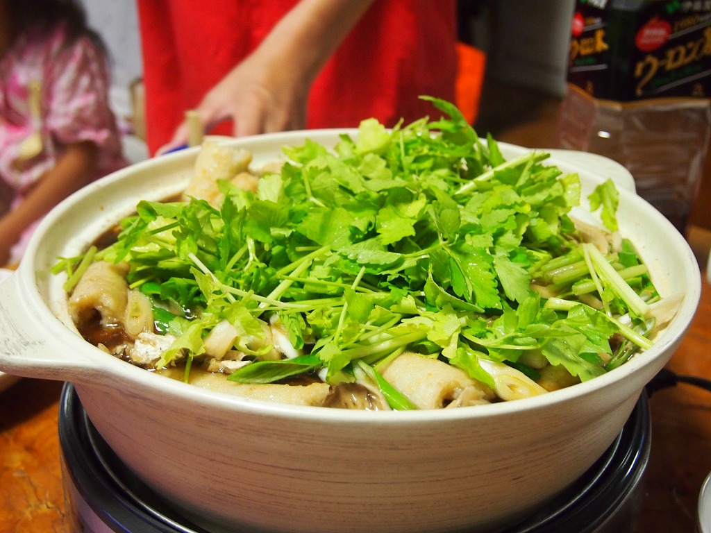 この鍋にのっている緑は全てセリです。こんな大量のセリ、売ってるのすら見たことないw