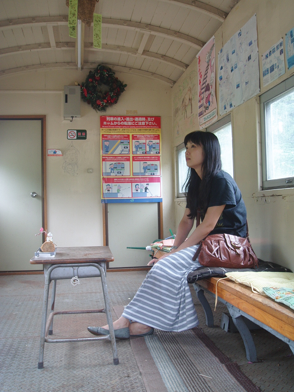 道の行き止まりに急に現れるのがこの車両の駅。